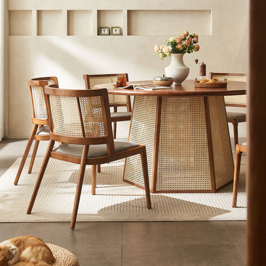 The Arden Rattan Dining Table combines natural textures with modern elegance. Its sturdy solid wood top is beautifully supported by a base wrapped in handwoven rattan, adding warmth and an artisanal touch. Perfect for creating a cozy yet sophisticated dining space, the Arden is both a functional centerpiece and a design statement.