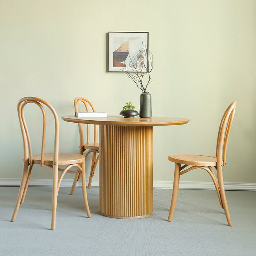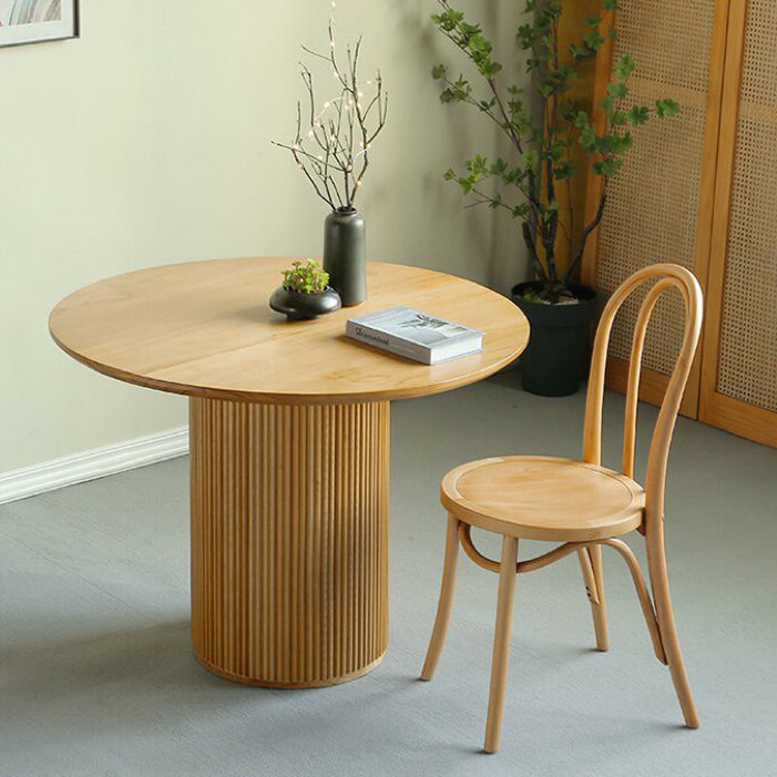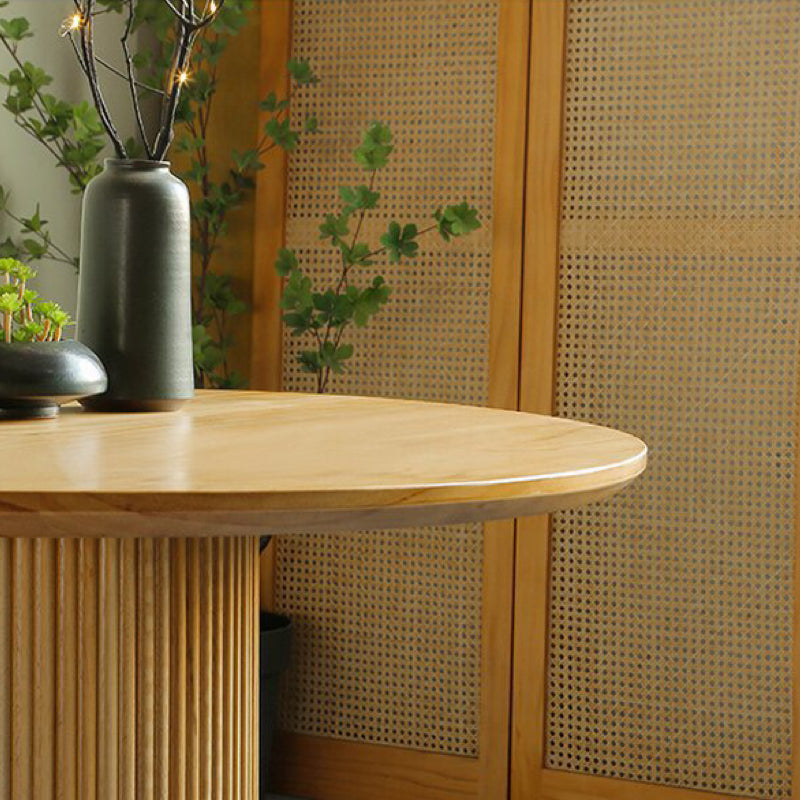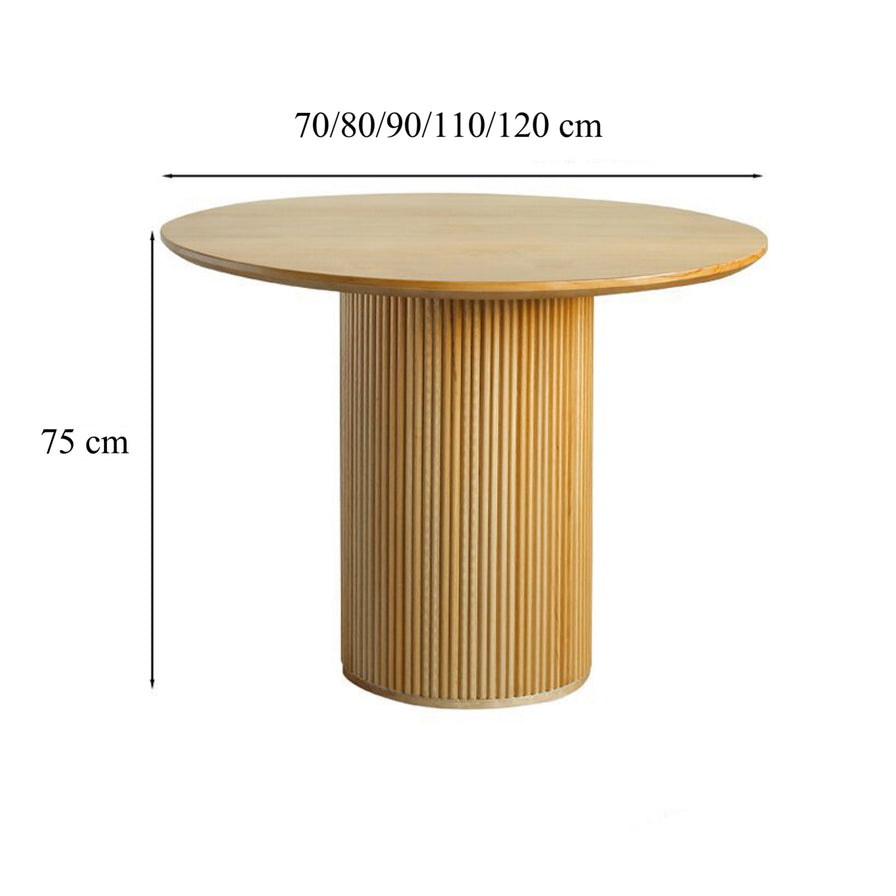 Ground your dining space in natural elegance with the Cyrus Pine Wood Dining Table. Featuring a robust cylindrical base crafted from solid pine wood, this table exudes timeless charm and structural integrity. The smooth, round tabletop provides ample space for gatherings while highlighting the natural grain of the wood.