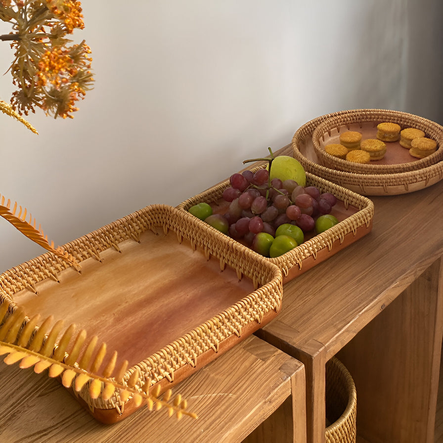手工编织藤条托盘