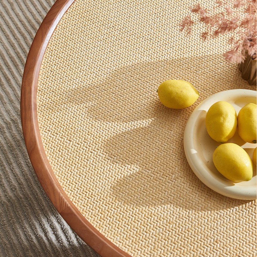 - Made of Natural Wooden Frame & Woven Rattan Table Top