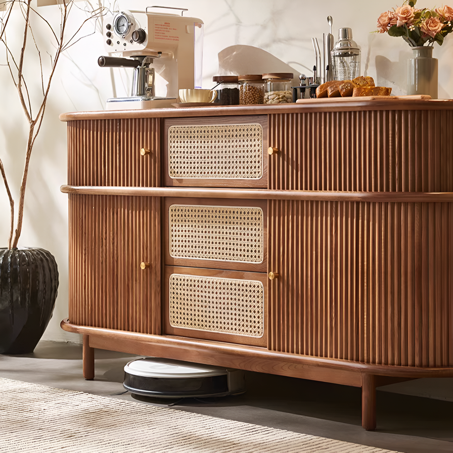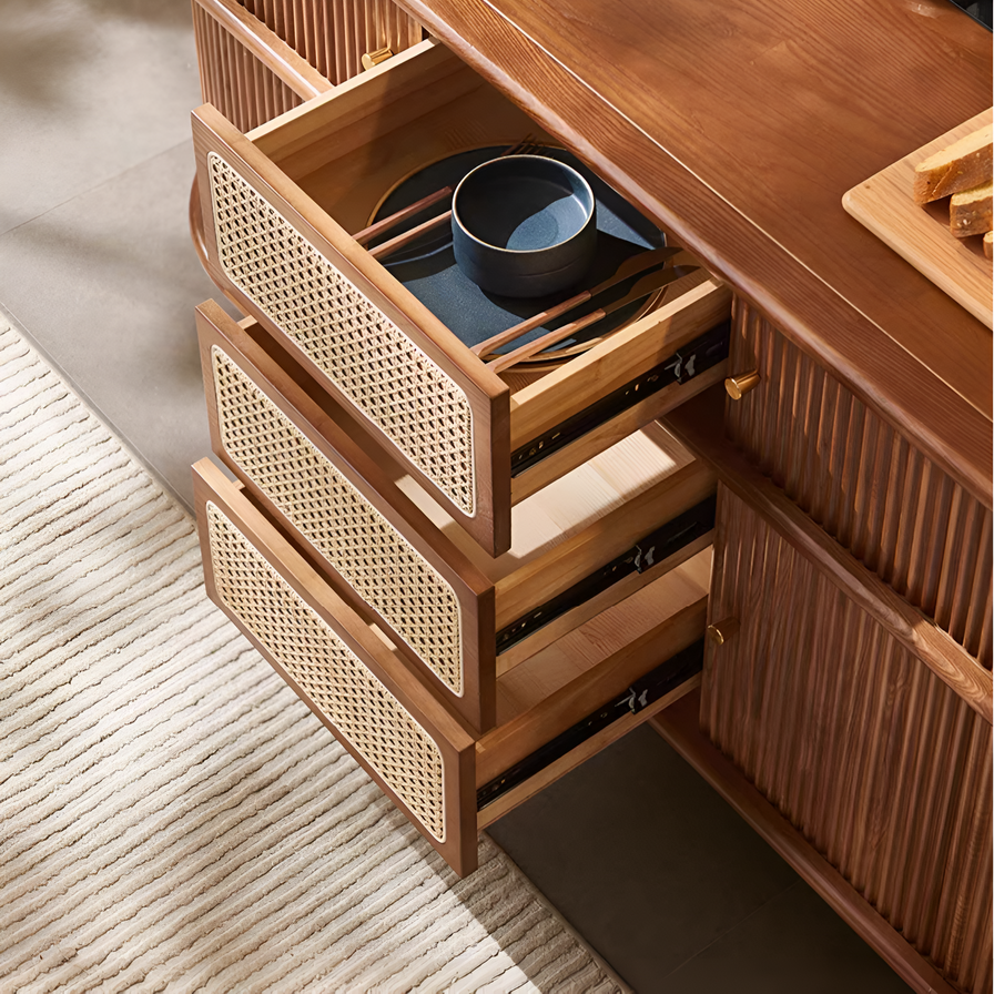介绍格子乡村木柜,这是一款引人注目的作品,完美地融合了乡村魅力和实用优雅。这款橱柜采用坚固的木质框架,搭配精巧编织的藤条抽屉,营造出视觉上吸引人的纹理对比。