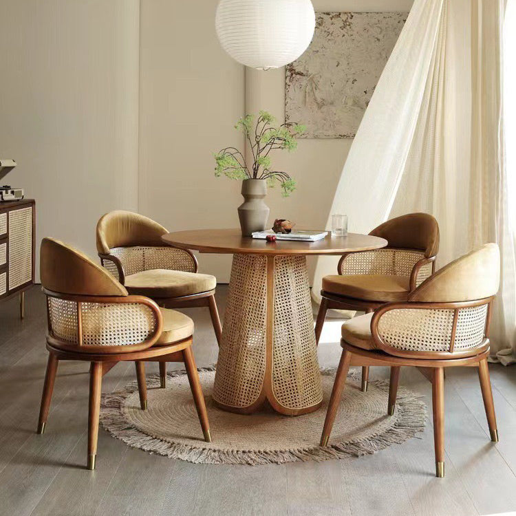 藤条天堂餐椅将自然之美与奢华舒适完美融合,可提升您的用餐体验。这款椅子采用精美的木制框架搭配优雅的藤条细节,为任何用餐区带来一丝古典魅力。毛绒天鹅绒面料座垫增添了额外的舒适感和精致感,在用餐期间提供柔软、支撑的体验。藤条天堂餐椅完美适合现代和传统室内装饰,将藤条的永恒魅力与天鹅绒的华丽相结合,使其成为您用餐空间的杰出选择。