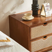Introduce natural sophistication to your bedroom with the Raya Rattan Bedside Table, a perfect fusion of solid wood craftsmanship and elegant woven rattan detailing. Designed with both style and functionality in mind, this two-drawer bedside table offers ample storage to keep your nighttime essentials organized and within reach.