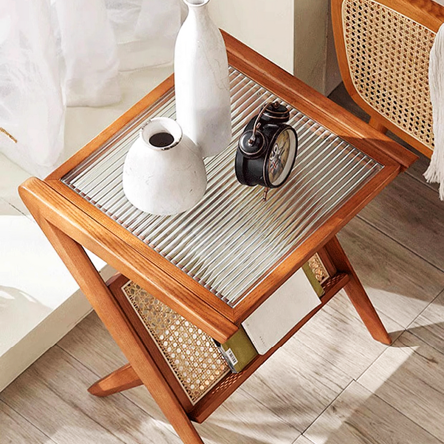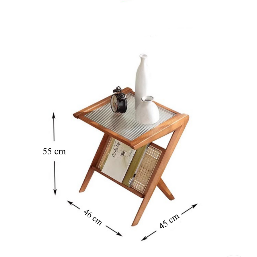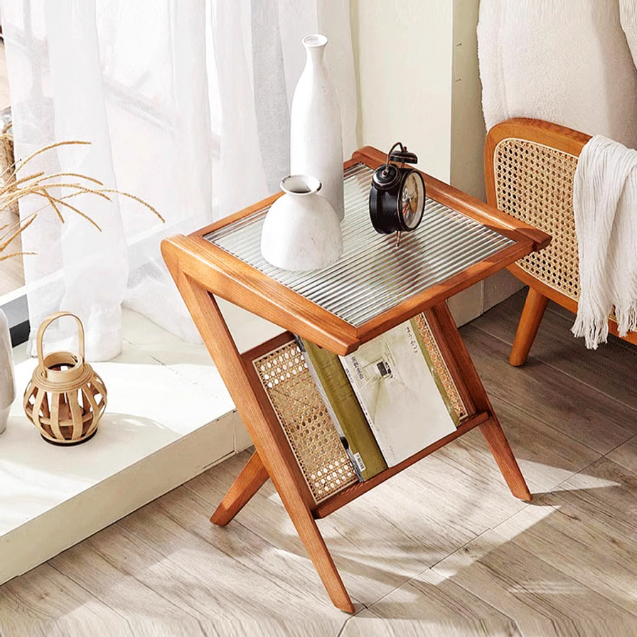 - 采用天然木材、藤条和钢化玻璃制成
